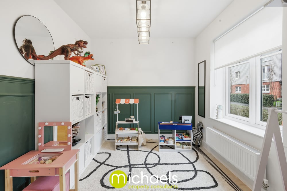 To the first floor, the generous bedroom accommodation is immediately apparent. The principal bedroom benefits from its own en-suite shower room, while bedrooms two through four are all well-proportioned, making them ideal for modern, growing families. A luxury family bathroom serves the remaining bedrooms.