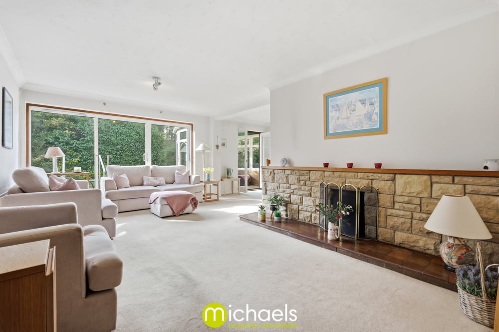 The home itself offers approximately 2,500 sq ft of versatile accommodation over two floors, providing an excellent canvas to enjoy as is or improve upon. The ground floor comprises a welcoming entrance porch and hallway, two bedrooms (with the fifth bedroom ideal as a study), an impressive L-shaped reception room combining living and dining areas with a feature fireplace, a separate snug with large patio doors, a conservatory, a fitted kitchen with space for appliances and access to the integral double garage, and a ground floor shower room.