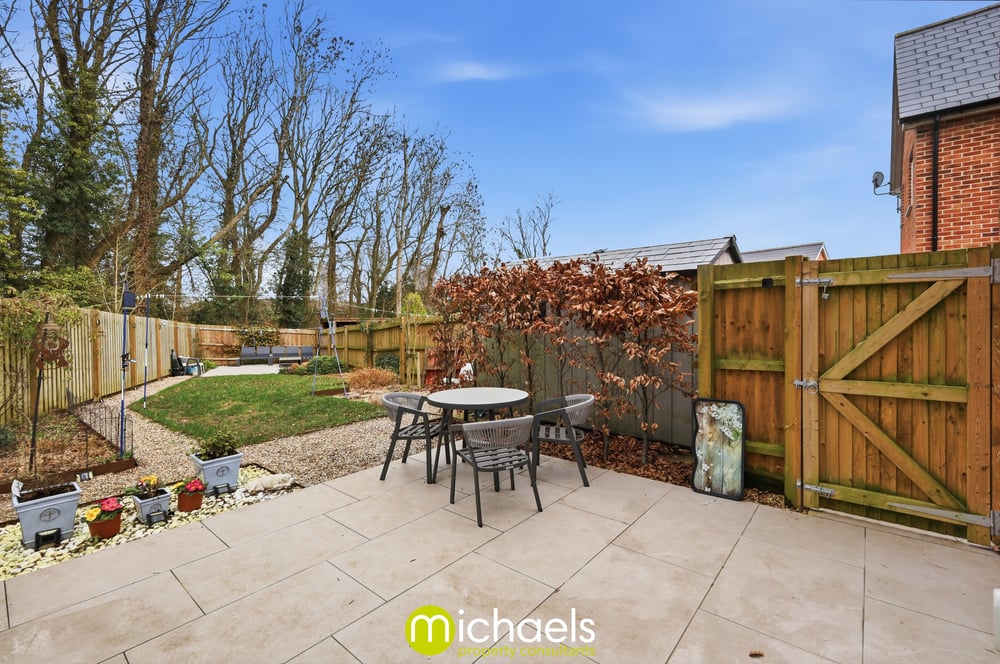 Externally, the property offers a generous, private and enclosed rear garden comprising a porcelain patio, lawned area, shingled section and panel fencing. A further patio provides an ideal space for al fresco dining and seating. Secure car port parking is enclosed by timber gates.