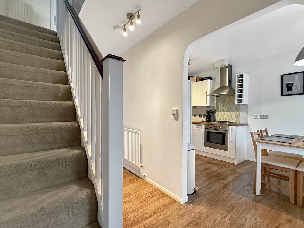 The well-proportioned accommodation comprises a welcoming entrance hall with stairs rising to the first floor, a convenient ground floor cloakroom, and a generous kitchen/diner providing ample space for a sizeable dining table. To the rear, the bright and airy living room enjoys direct access to the garden, creating an ideal space for both relaxing and entertaining.