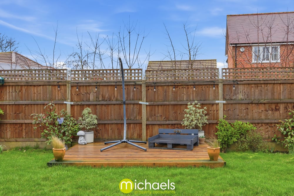 Externally, the home boasts an excellent rear garden that spans an impressive plot from front to back. A sizeable patio area provides the perfect setting for alfresco dining and entertaining, while the remainder of the garden is predominantly laid to lawn and enclosed by panel fencing. Raised decking adds further seating and relaxation space.