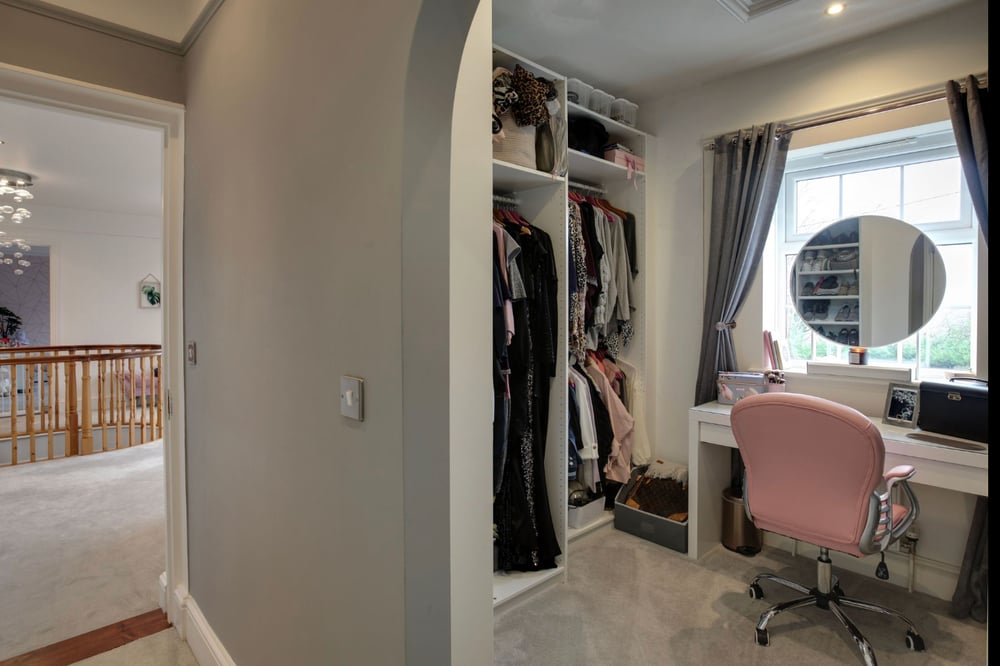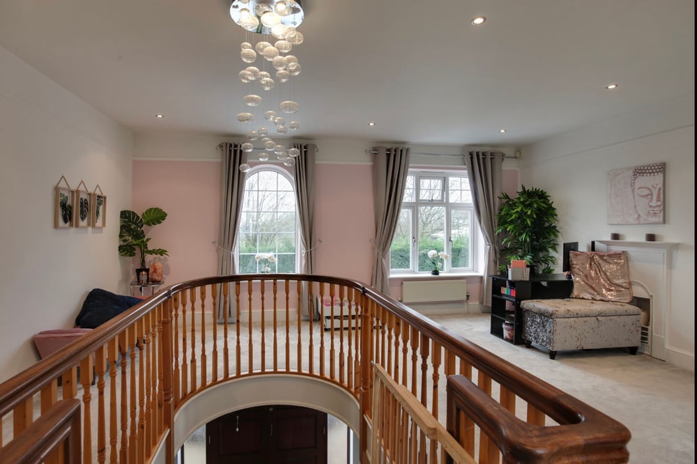 The staircase rises to the first floor, opening onto an impressive galleried landing. This versatile space offers excellent potential for a variety of uses, having previously been utilised by the current owners as both a home office and a TV room. Leading off the landing are four well-proportioned double bedrooms. Three of the bedrooms benefit from their own dressing room or designated dressing area, along with en-suite shower facilities. The fourth bedroom is served primarily by a separate family bathroom suite.