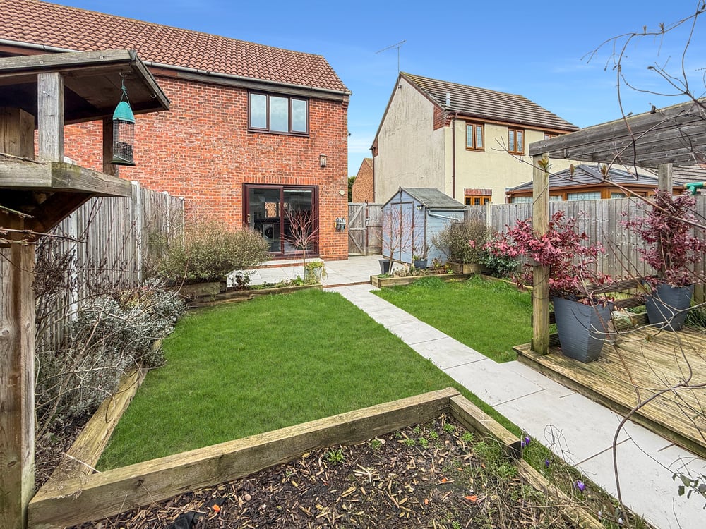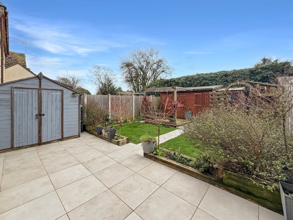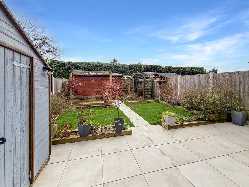 A well maintained and stocked rear garden including a patio area, vegetable patch with raised beds workshop, garden shed and the remainder of the garden is laid to lawn. Retained by privacy fencing.