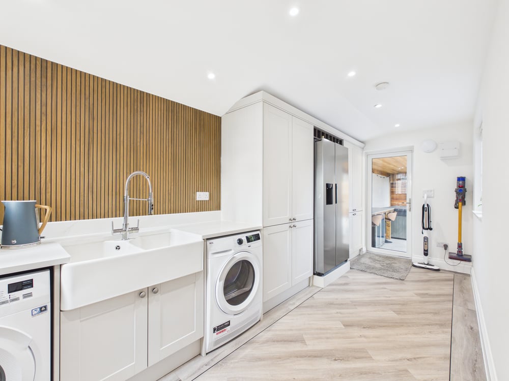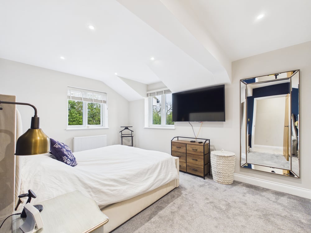 Accommodation comprises four generously sized bedrooms, including a luxurious main bedroom suite complete with a high specification en-suite bathroom. This lavish bathroom boasts his and hers sinks, creating a practical yet stylish space for daily routines. A further high specification family bathroom, enhanced with a built-in TV, adds an extra touch of modern luxury to the home. Additional amenities include a useful utility room and a cloakroom, providing ample storage and convenience for the whole family.
