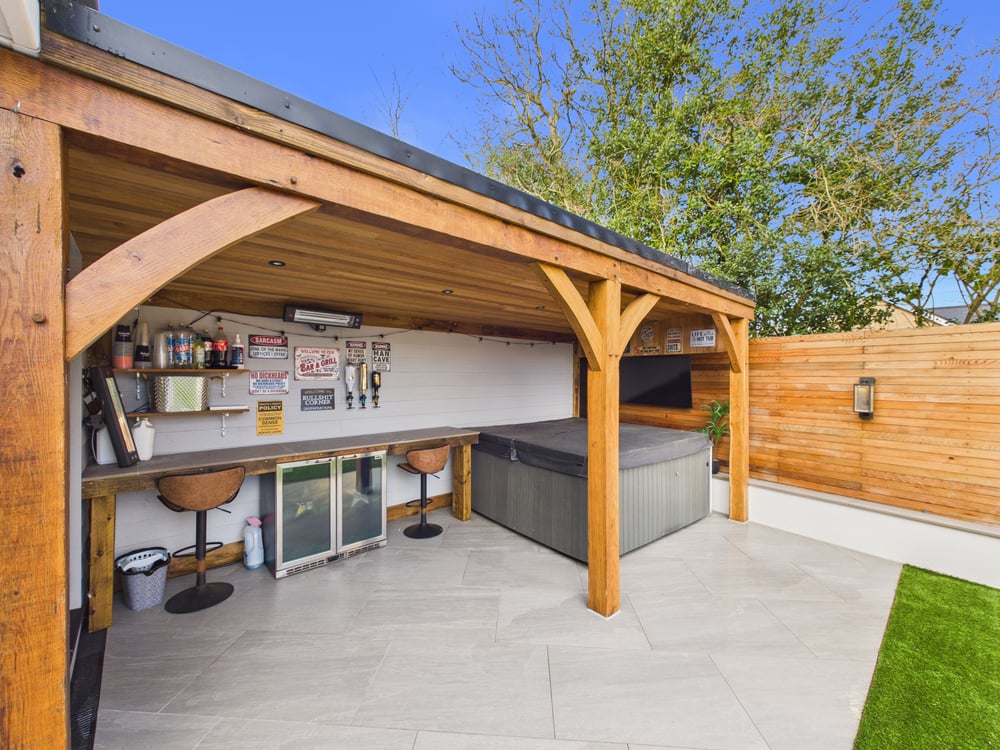 Outside, the fully landscaped garden has been designed to offer maintenance-free living, allowing you to enjoy your outdoor space without the hassle, while the various seating and dining areas make it perfect for entertaining or simply unwinding in style. (hot tub STN)