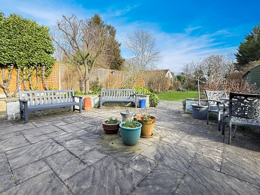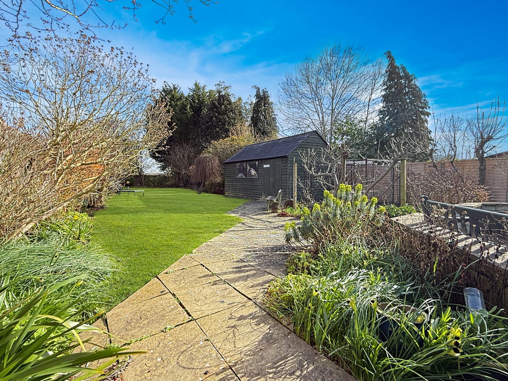 Externally, the property boasts a substantial 150ft rear garden, mainly laid to lawn with mature planting and backing onto a charming copse that leads to open countryside, creating a wonderful sense of privacy and seclusion. To the front, a private driveway provides off-road parking for multiple vehicles and leads to a detached garage.