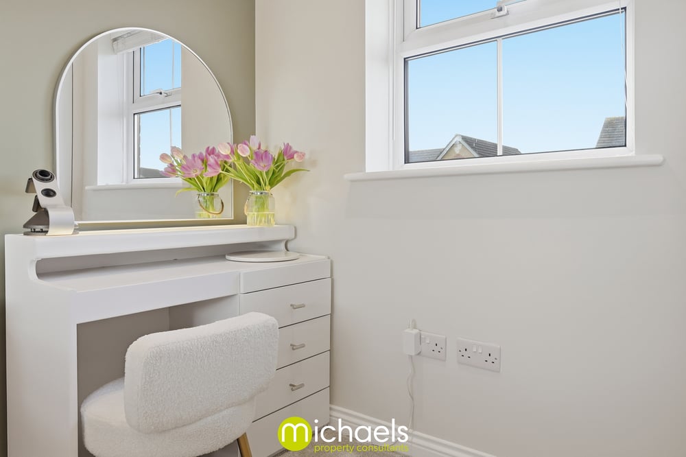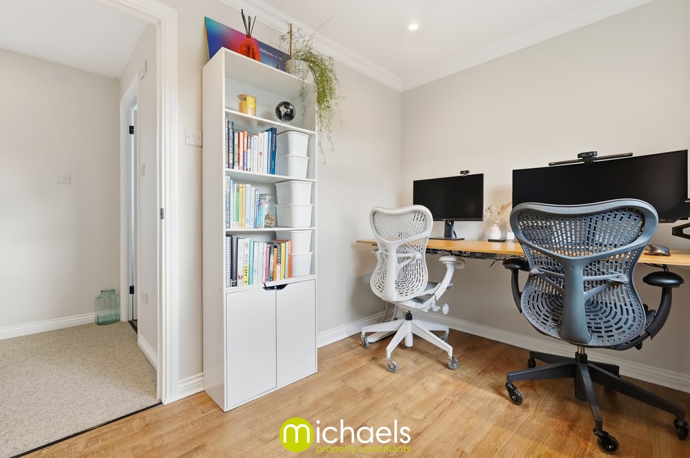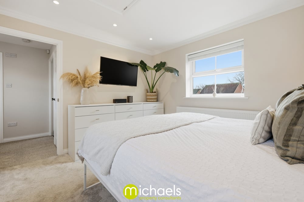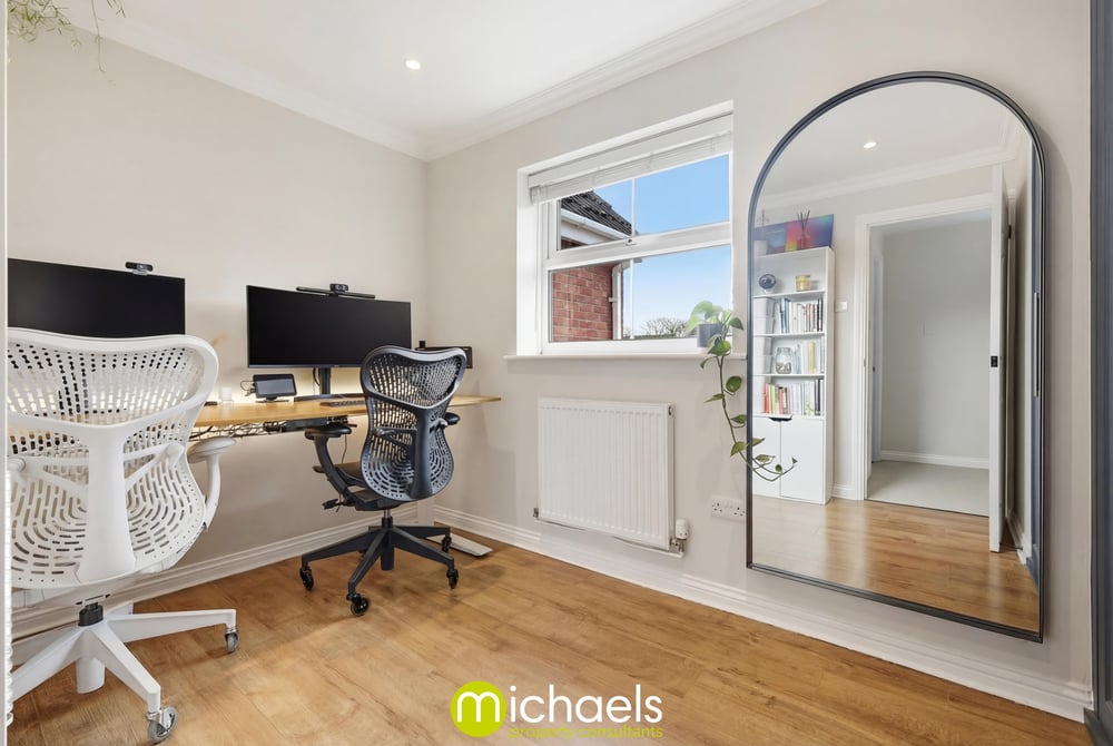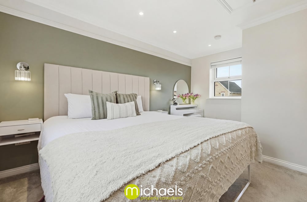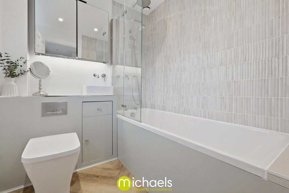 Upstairs, there are two well-proportioned bedrooms, with the principal bedroom benefitting from wall-mounted bedside lights and space for a dressing table. A luxurious first-floor bathroom completes the accommodation.