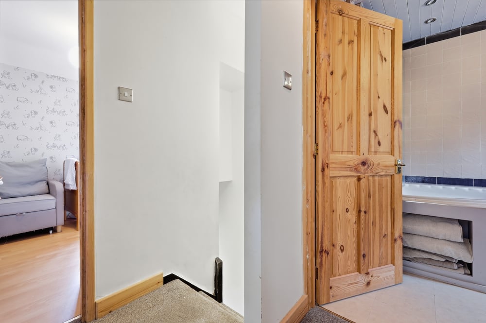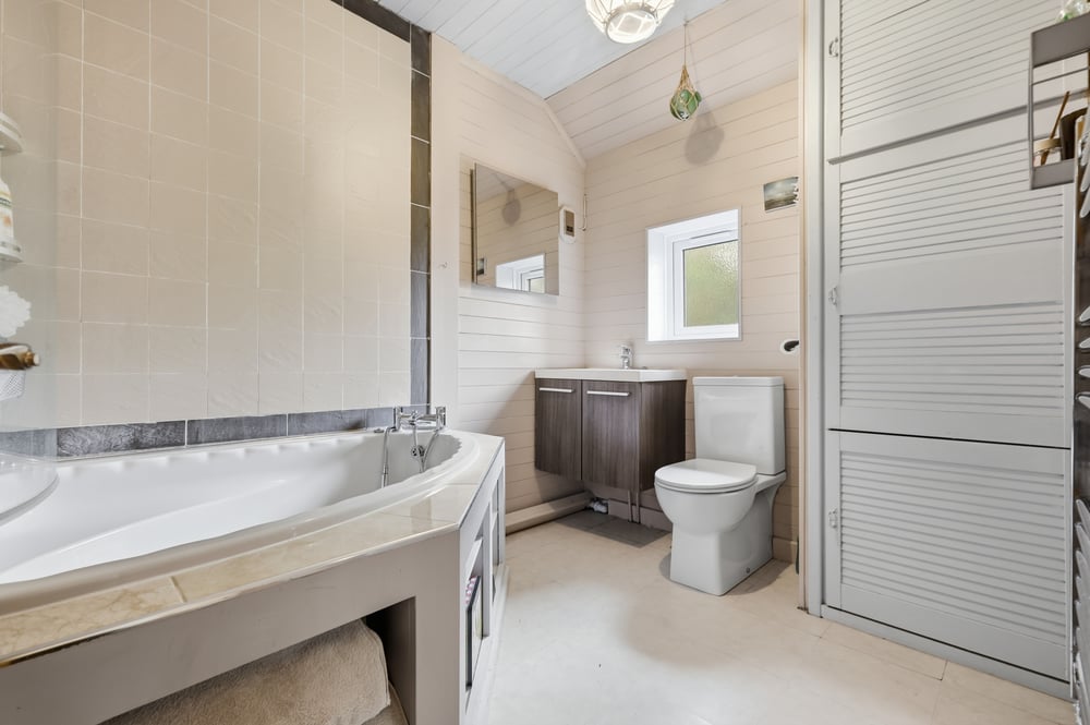 The first-floor bathroom is well-appointed and conveniently located for all bedrooms, offering a practical bathing solution with potential for modernisation to suit your tastes. The neutral tones and clean design provide a fresh canvas for personal touches and enhancements.