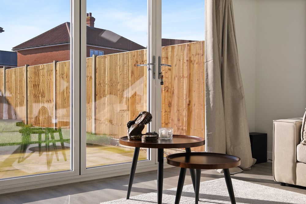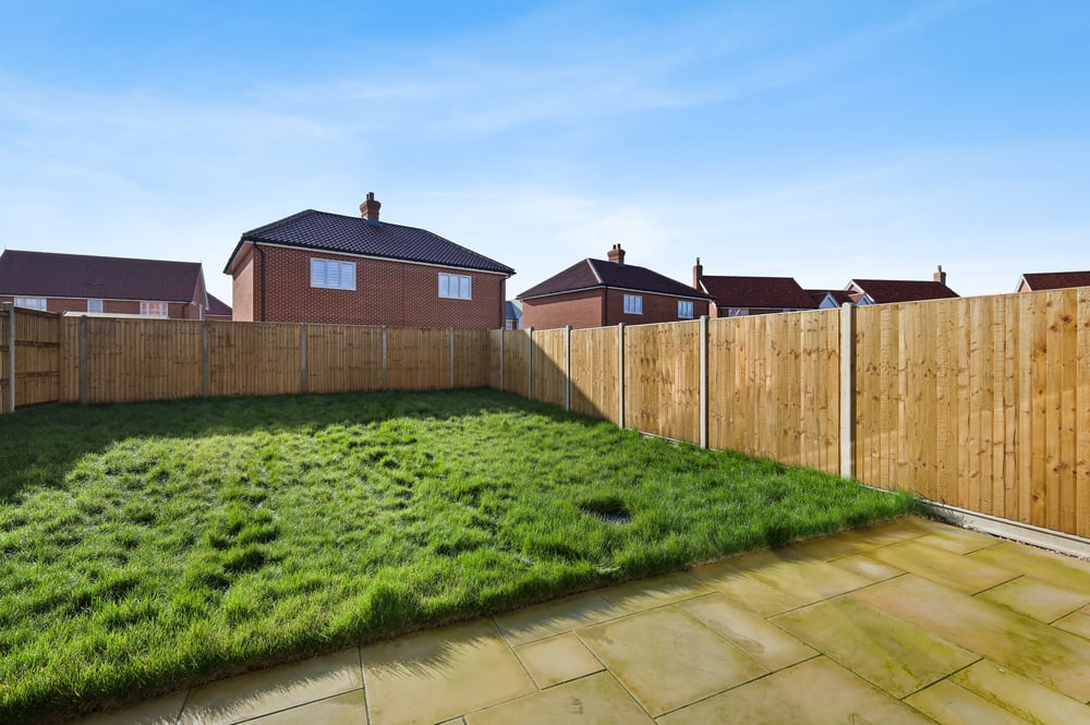 Mainly laid to lawn with patio area, garden shed, gated side access and all enclosed by panel fencing.