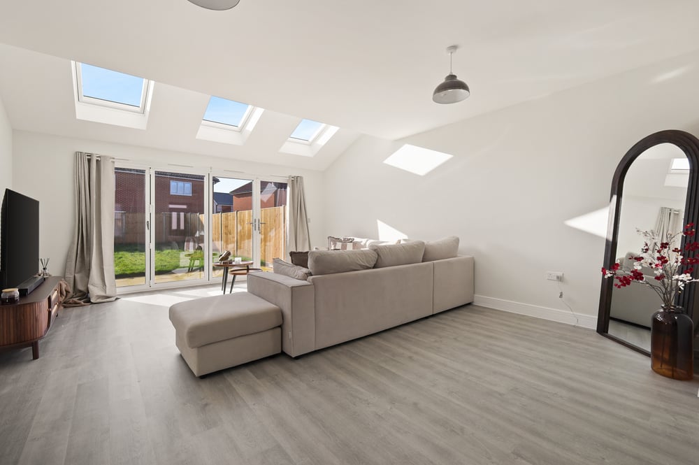 22' 8" x 16' 5" (6.91m x 5.00m) Bi-Folding doors to rear, three skylight windows to rear, LVT flooring with heating under. fitted cupboards and open to: