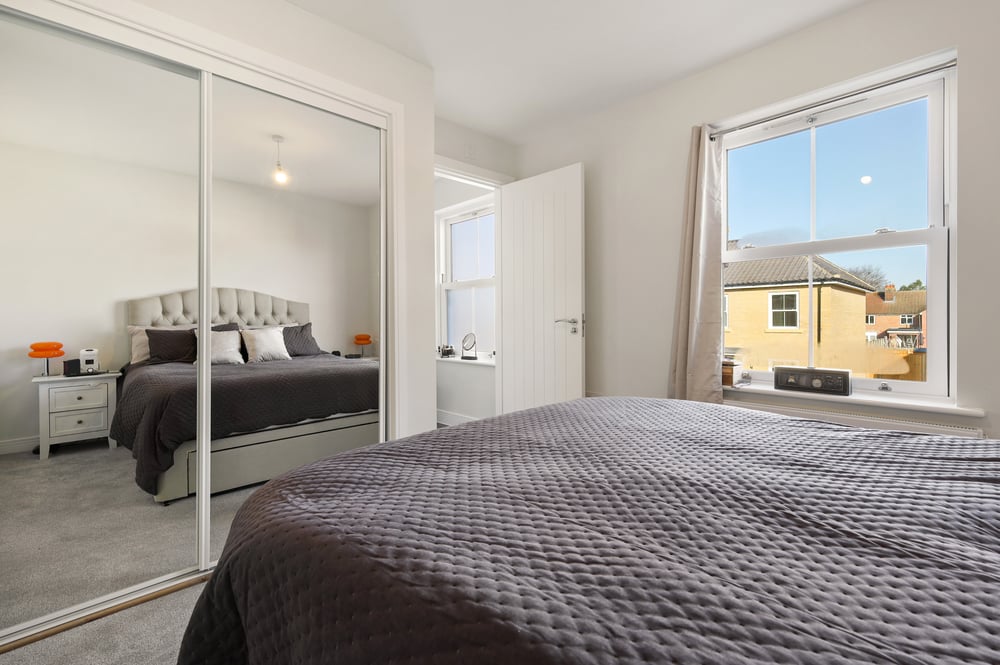 13' 10" x 10' 9" (4.22m x 3.28m) Window to front, radiator, fitted wardrobe and door to en-suite.