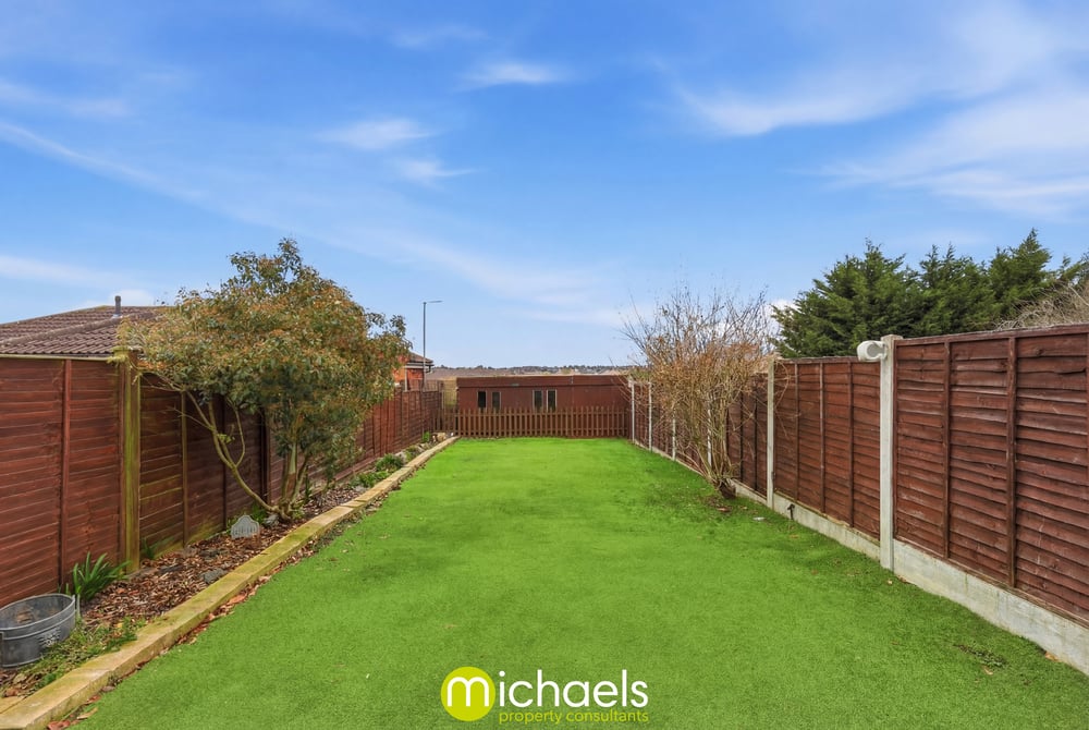 The property benefits from a generous, private and enclosed rear garden, designed with low maintenance in mind, featuring artificial lawn and enclosed by panel fencing. To the rear, there is a substantial outbuilding offering excellent storage or potential workspace. To the front, off-road parking is available for one vehicle via a private driveway.