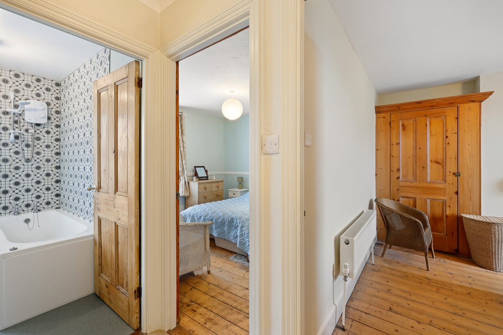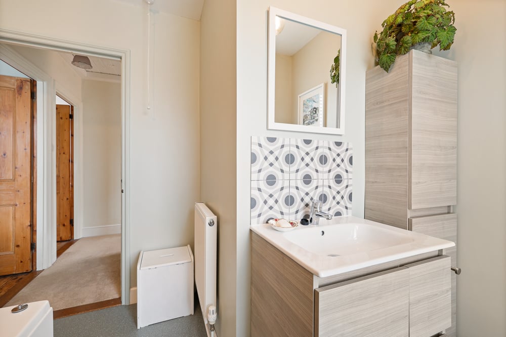 Upstairs, the property offers two excellent double bedrooms alongside a well-proportioned third bedroom. The upgraded first-floor bathroom is finished to a high standard, featuring stylish geometric tiling, a decorative splashback and vanity basin.