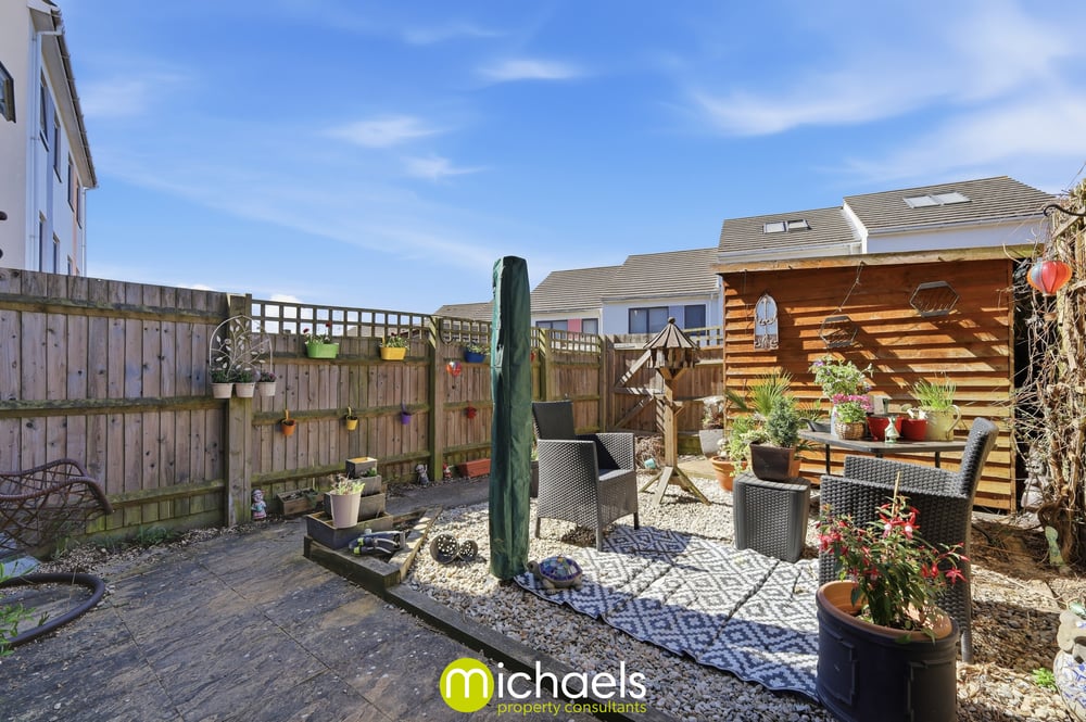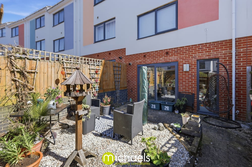 The property benefits from a low-maintenance, enclosed landscaped rear garden with a shed, secure gated rear access, and panel fencing. Allocated parking is available to the rear.