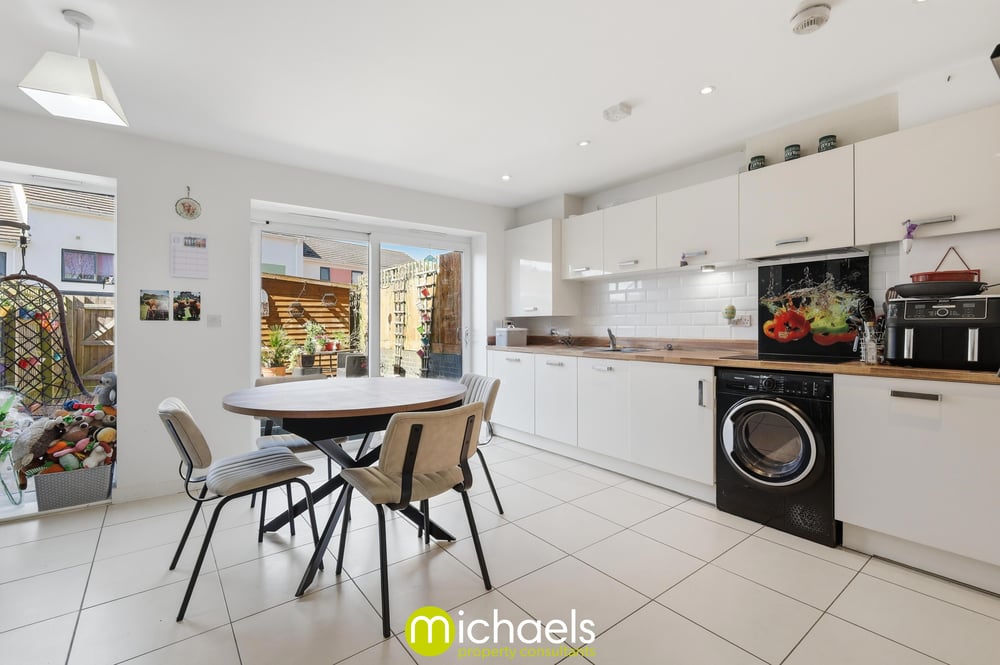 This versatile townhouse is arranged over three generous floors. The ground floor comprises a welcoming entrance hall, a study, a downstairs cloakroom, and a modern kitchen-diner featuring a tiled splashback, space for integrated appliances, and access to the rear garden. There is also useful under-stairs storage.