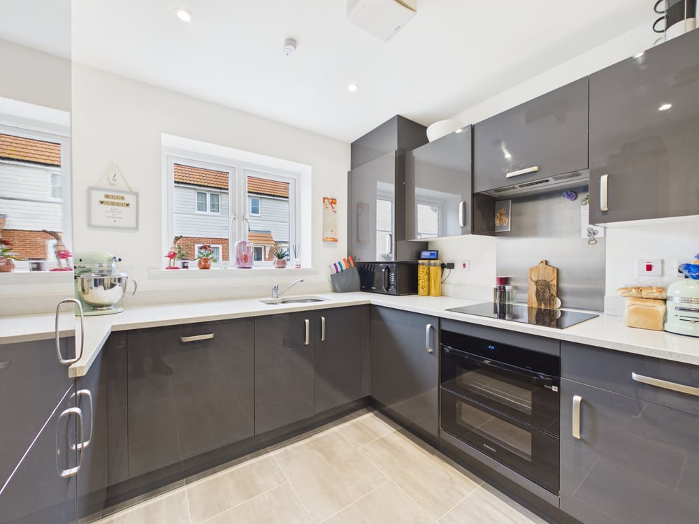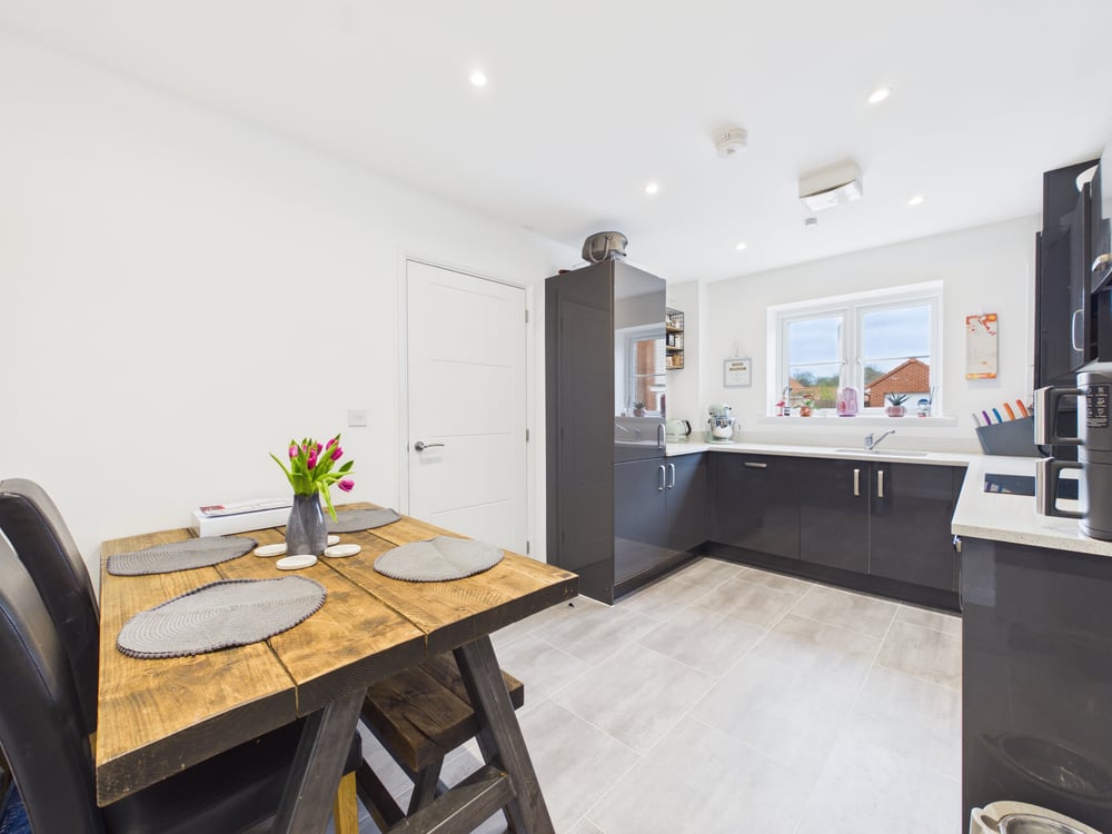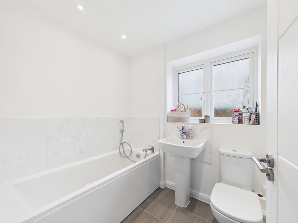 Step inside the property to find a generous living room that provides ample space for relaxing or entertaining. This bright and airy room benefits from direct access to the rear garden, creating a seamless flow between indoor and outdoor living areas—perfect for sunny afternoons or evening gatherings. The contemporary kitchen/diner is thoughtfully designed with modern fixtures and fittings, delivering a practical and stylish space to prepare meals and enjoy family dining. A useful WC completes the ground floor.
