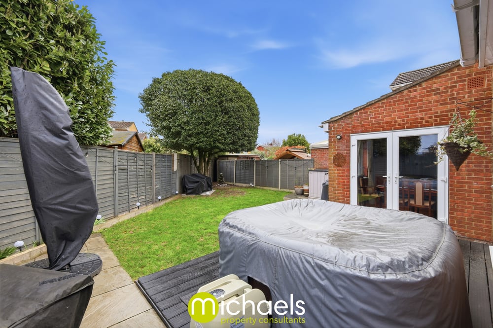 Externally, the property benefits from off-road parking via a private driveway, leading to a single garage with a roller door. To the rear, a generous and private garden is predominantly laid to lawn, with a raised decking area ideal for al fresco dining. The garden is fully enclosed by panel fencing and also features a patio area, perfect for outdoor seating, creating a safe and private outdoor space.
