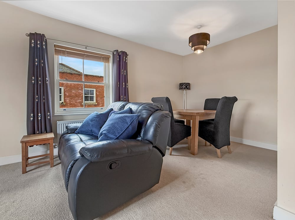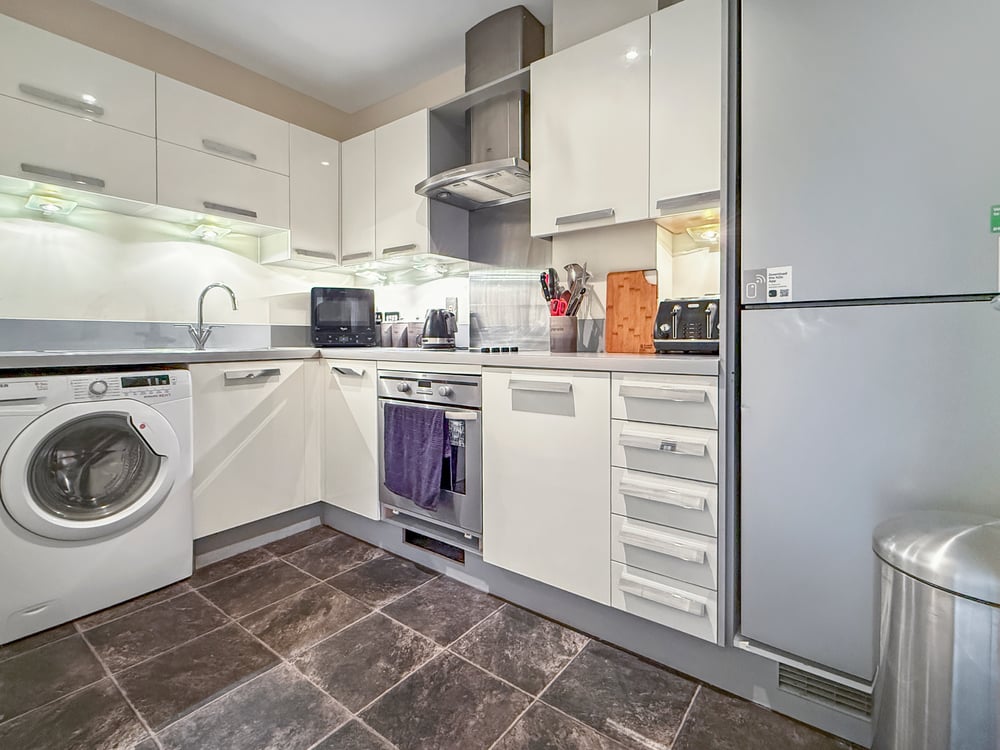 The apartment features an inviting entrance hall leading to a dual-aspect living and dining room, providing plenty of natural light and a spacious feel. The modern kitchen is stylish and practical, ideal for daily living. Both bedrooms are generous doubles, and there is a well-appointed bathroom.
