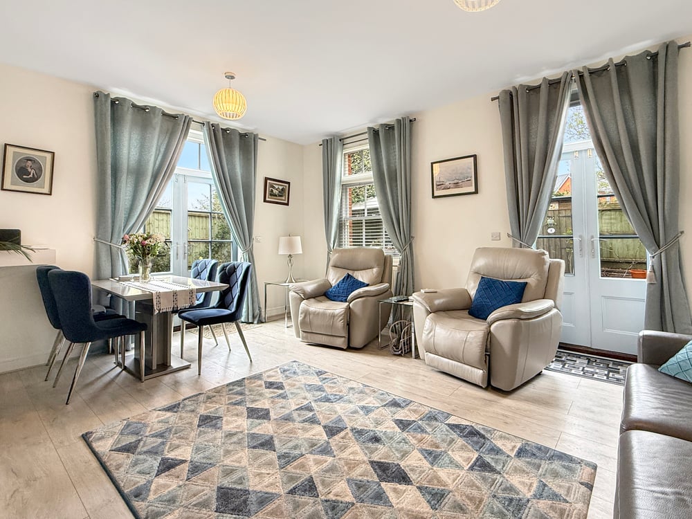 The accommodation effortlessly combines classic character with contemporary finishes, with an abundance of natural light flowing throughout. Internally, the property features a welcoming entrance hall with stairs rising to the first floor, a convenient ground floor cloakroom, a stylish and well-equipped kitchen, and a superb living/dining room benefitting from dual-aspect windows and French doors, creating a bright and inviting space ideal for both relaxing and entertaining.