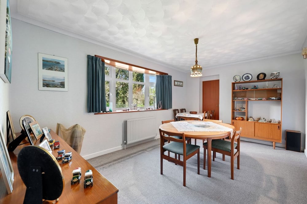 The ground floor features a welcoming entrance hall with stairs rising to the first floor, a generous sitting room centred around an open fireplace, a well-appointed kitchen/diner with direct access to the rear garden, a formal dining room, three well-proportioned bedrooms, and a four-piece family bathroom.