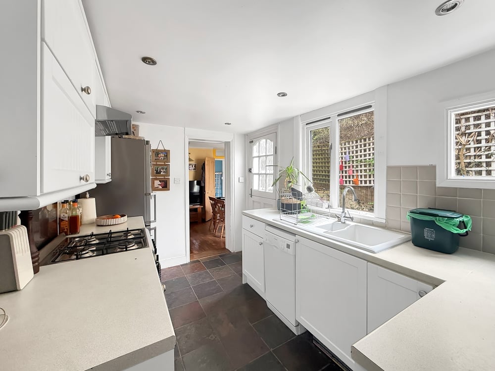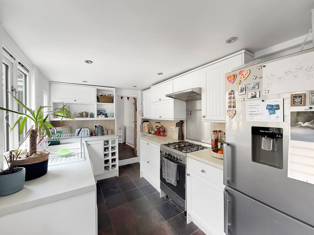 11' 5'' x 7' 5'' (3.48m x 2.26m) Windows overlooking courtyard, stable door to side, tiled floor inset spot lights, fitted kitchen with a range of wall and base units, laminate worktops, inset sink, space for oven, fridge/freezer and slimline dish washer.