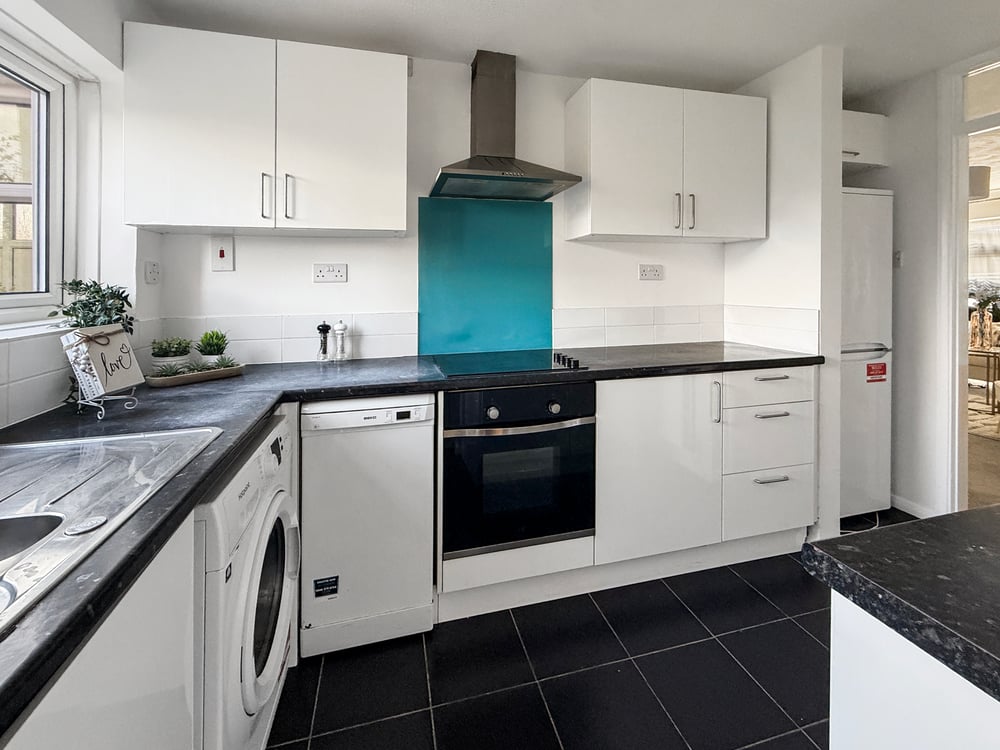 Double glazed window to rear, UPVC door to side, tiled floor, fitted kitchen including a range of wall and base units, laminate worktop, integrated oven, over head cooker, inset sink. space for washing machine and fridge/freezer.