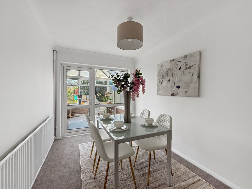 Patio doors to rear, radatior.