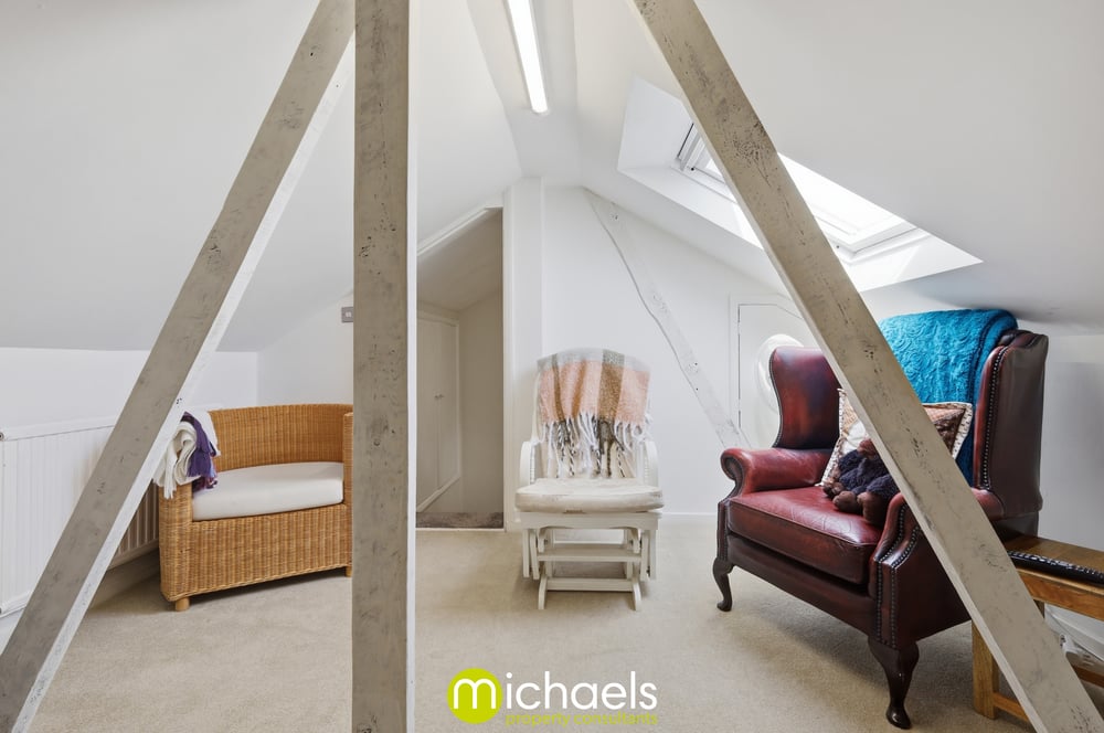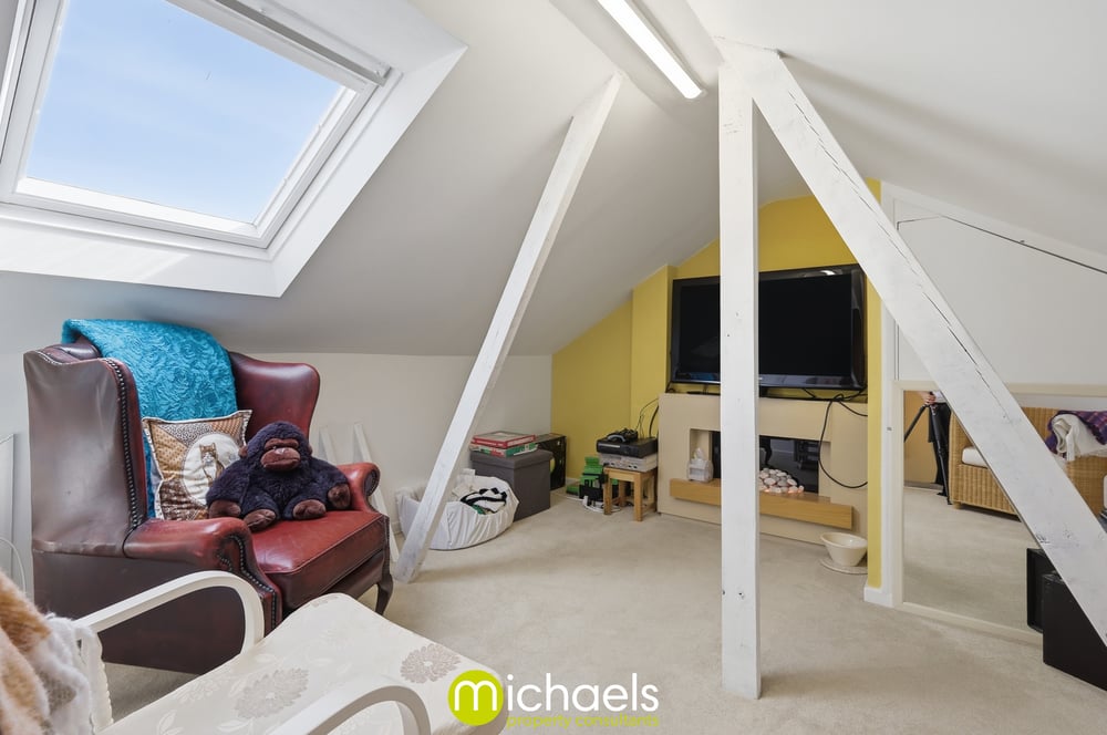 Commanding the second floor of the house is a generous loft room, offering a versatile space, complete with velux windows and eaves storage.