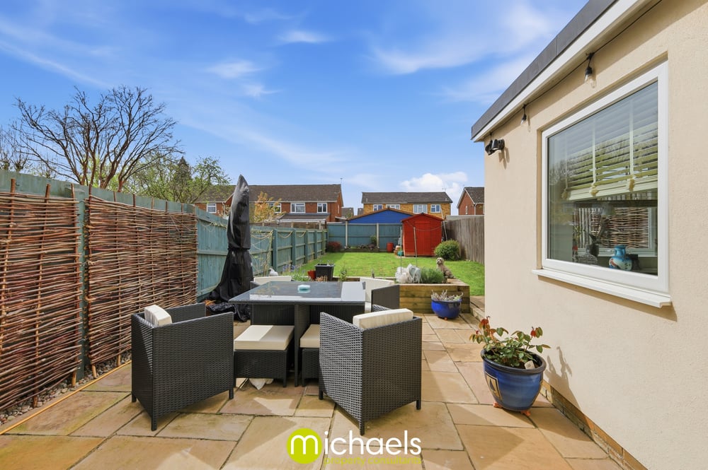 To the rear, the property enjoys a generous and enclosed garden, mainly laid to lawn, offering plenty of space for families and outdoor enjoyment. A patio area directly to the rear of the house provides an ideal space for seating and entertaining, with fenced boundaries offering a good degree of privacy.