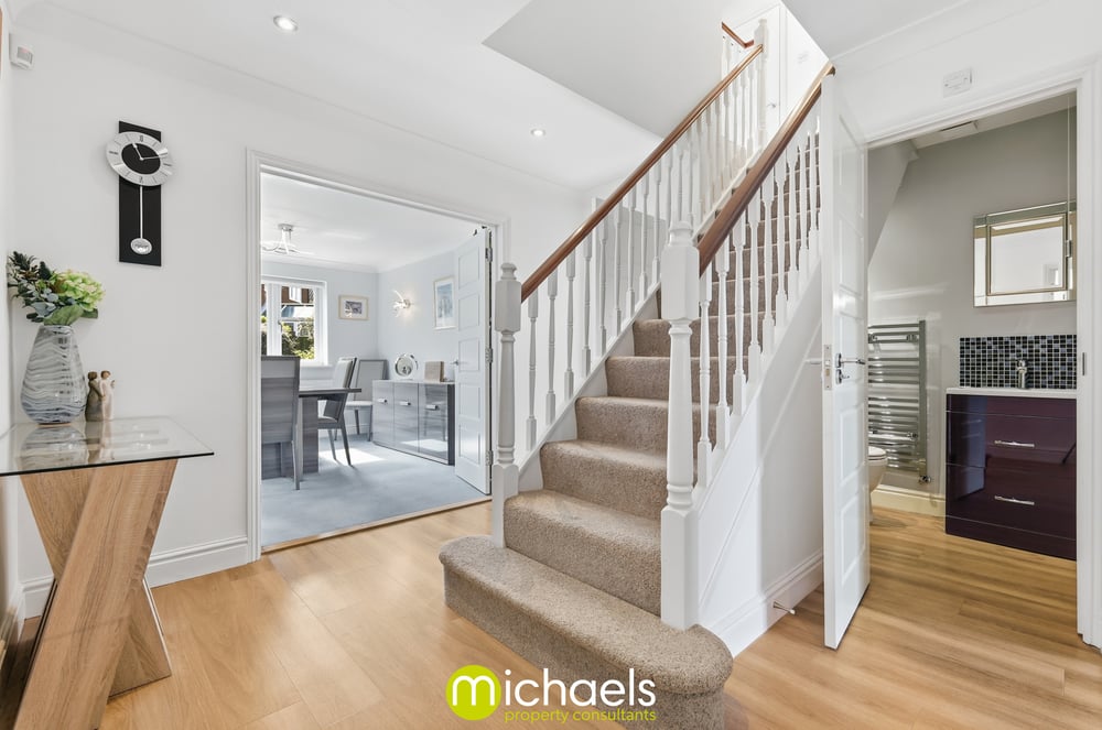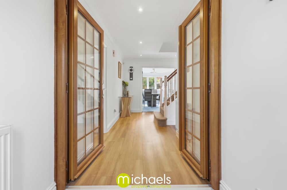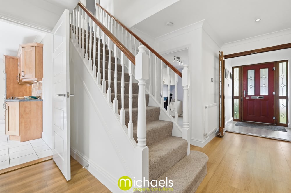 You are welcomed into a bright entrance hall featuring internal double glazed doors and a central staircase, setting the tone for the spacious and well-arranged accommodation throughout.