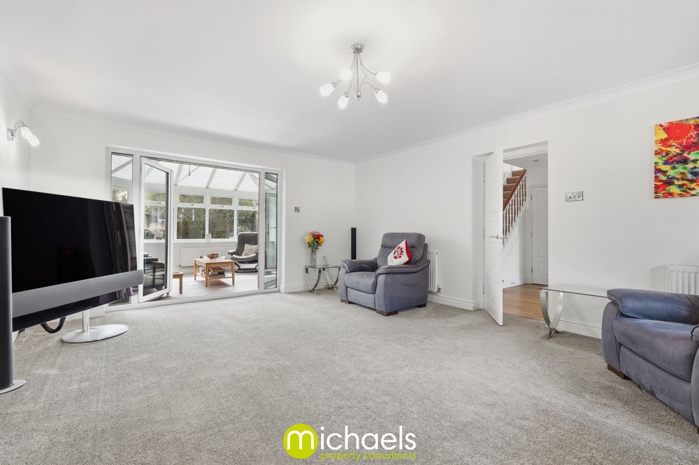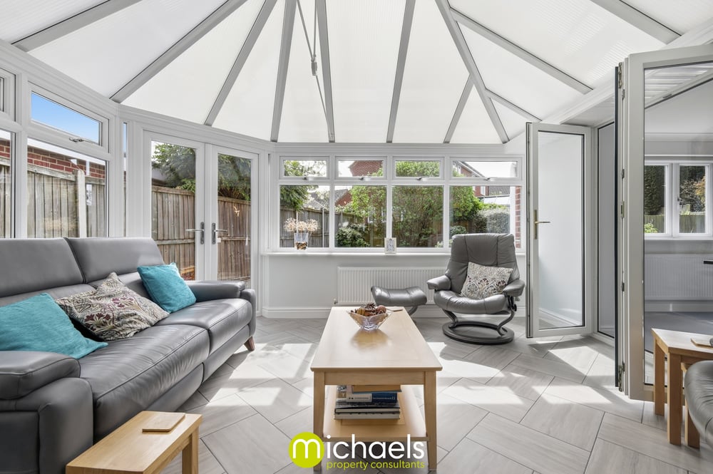To the rear, the home enjoys a well-maintained garden, mainly laid to lawn with a paved patio area ideal for outdoor dining and entertaining. The conservatory opens directly onto the garden, creating a seamless indoor-outdoor flow, while mature shrubs and planting provide a good degree of privacy.
