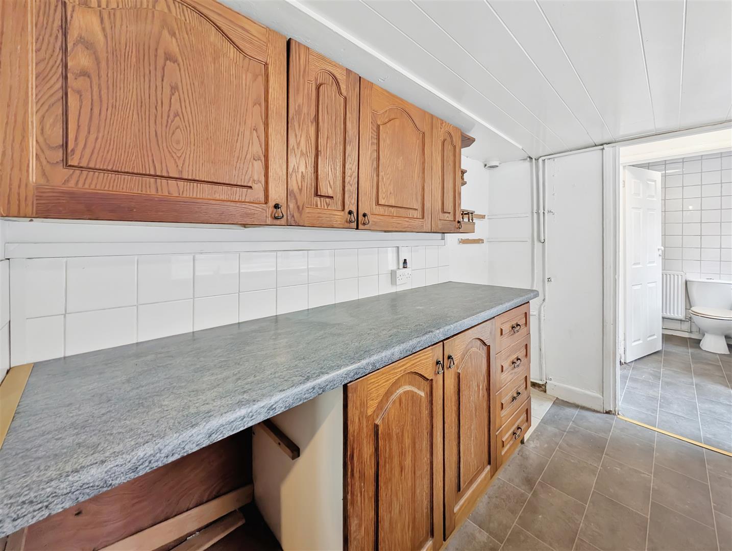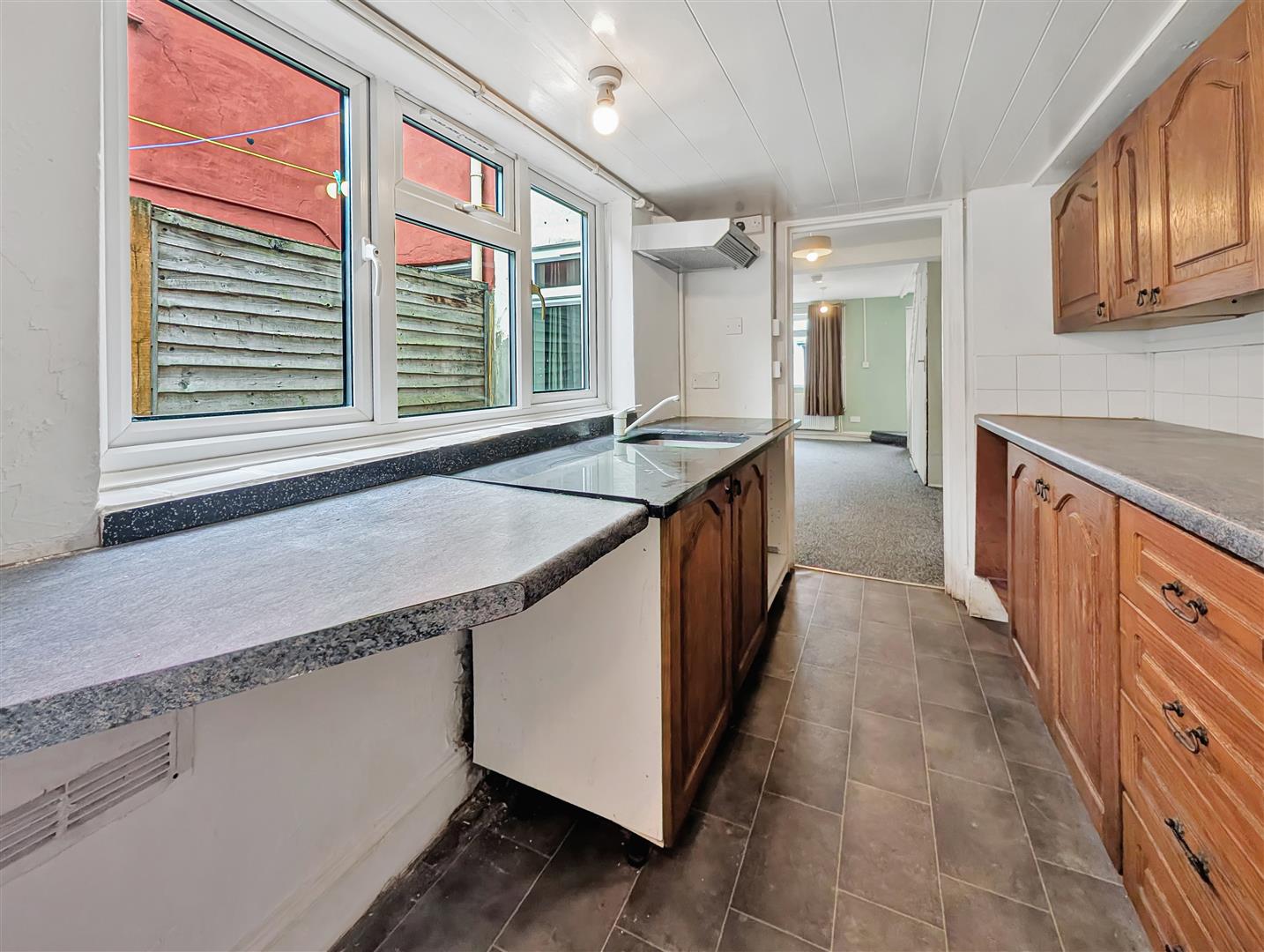 The property boasts a generously sized living area, providing an inviting space for both relaxation and entertaining. A separate kitchen offers practicality and ample storage, with direct access to the rear patio area—perfect for outdoor dining or enjoying warmer months. A well-appointed family bathroom completes the ground floor.