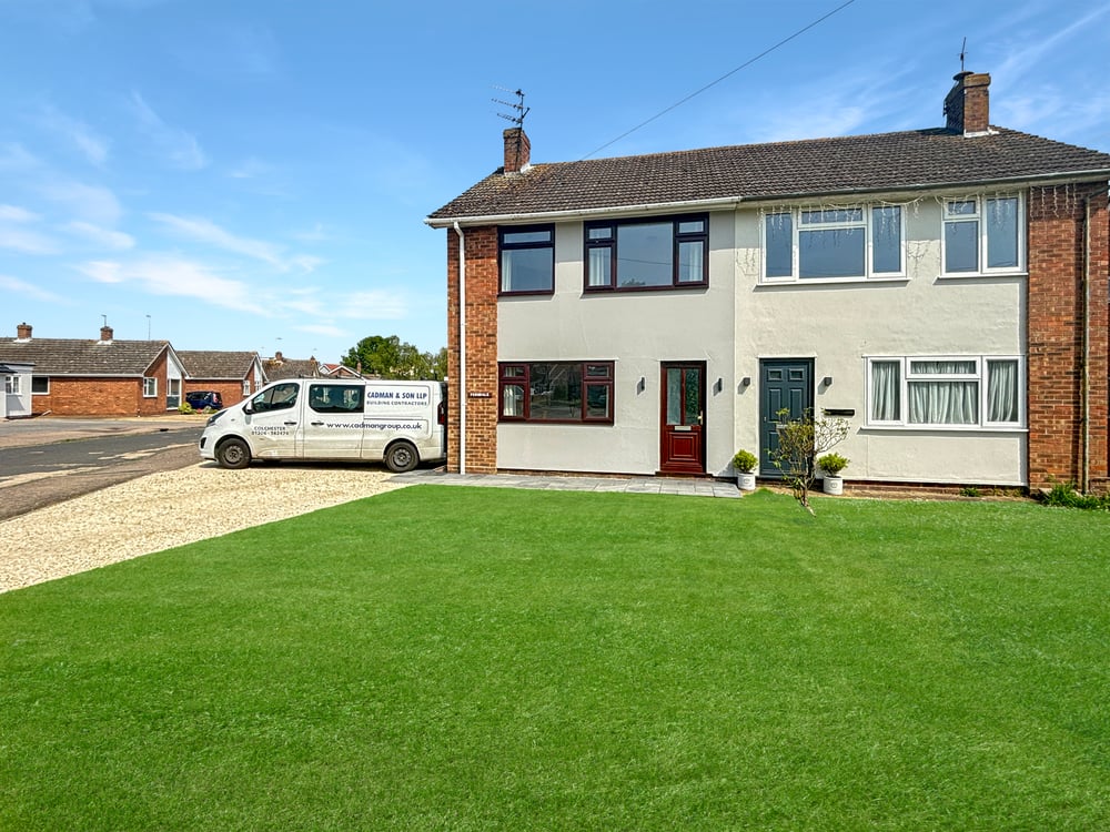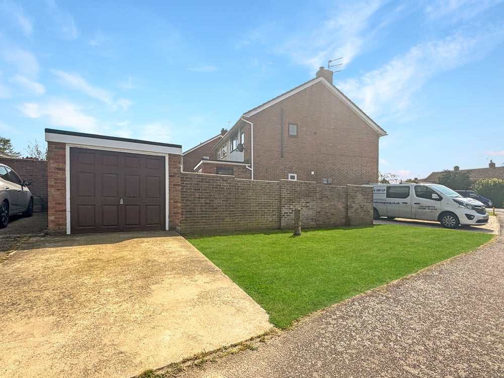 Garage with up & over door, ample off road parking via the driveway along with a generous frontage laid to lawn.