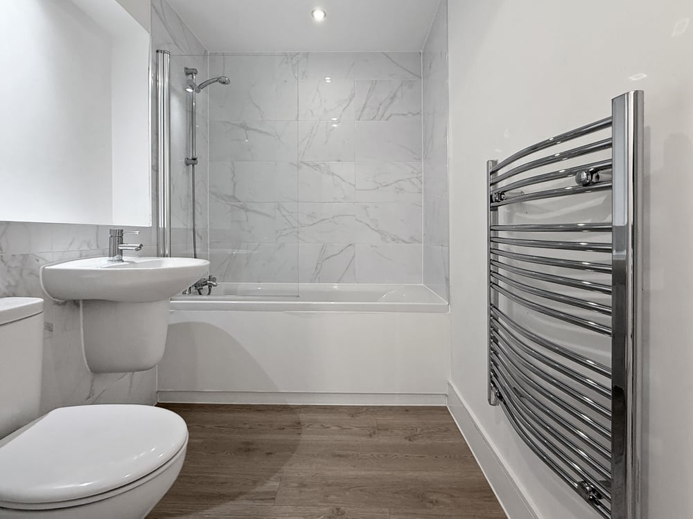 The generous double bedroom benefits from a large window, filling the space with natural light, while the modern bathroom is finished to a high standard.