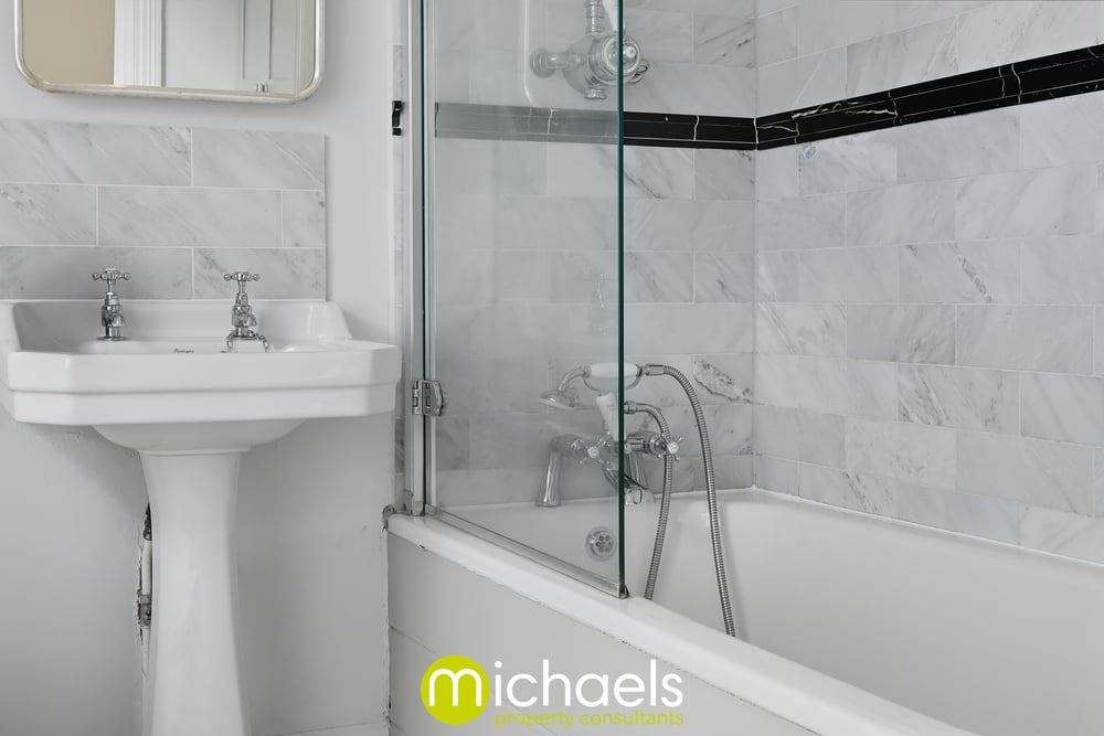 The second floor offers three further well-proportioned bedrooms, ideal for growing families or flexible home-working spaces. A sleek monochrome shower room with herringbone tiling, whilst eaves storage complete the upper level.