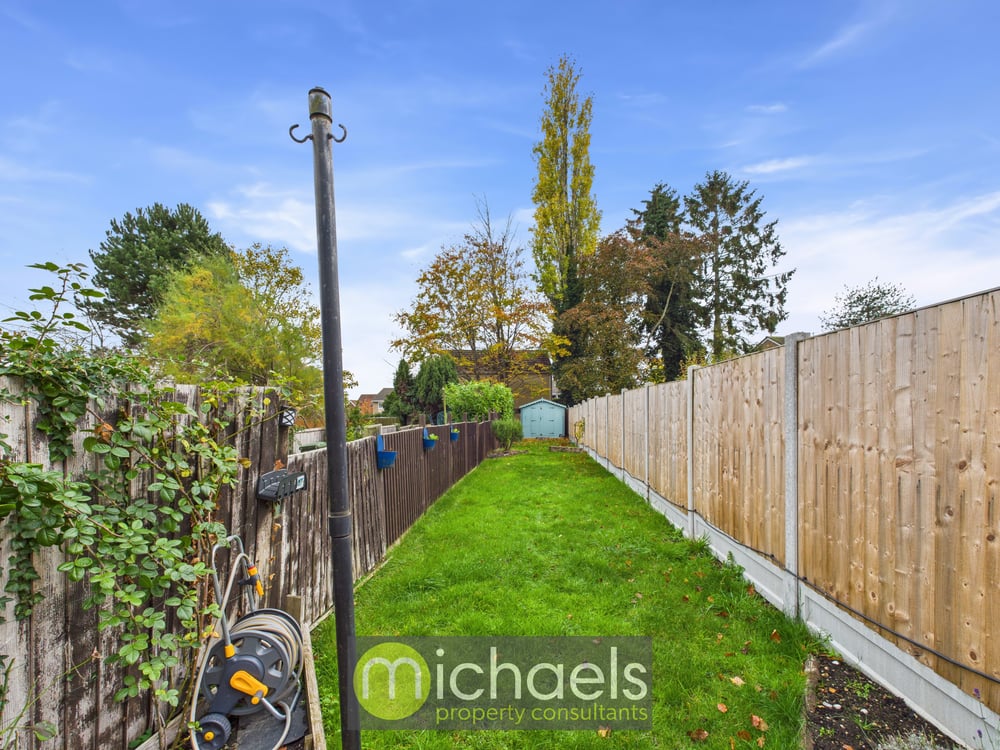 Outside, the rear garden is a very good size—secure, enclosed, and perfect for relaxing or gardening. At the far end, a large shed offers excellent storage or potential for a workshop.