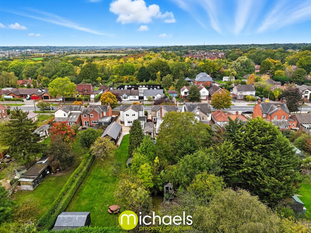 Outside, the home enjoys an impressive 175-foot east-facing garden with multiple seating and entertaining areas, including a paved patio, raised decking areas, a lawn, and even a treehouse. A single-length garage sits to the side of the property, and the front offers ample off-street parking.