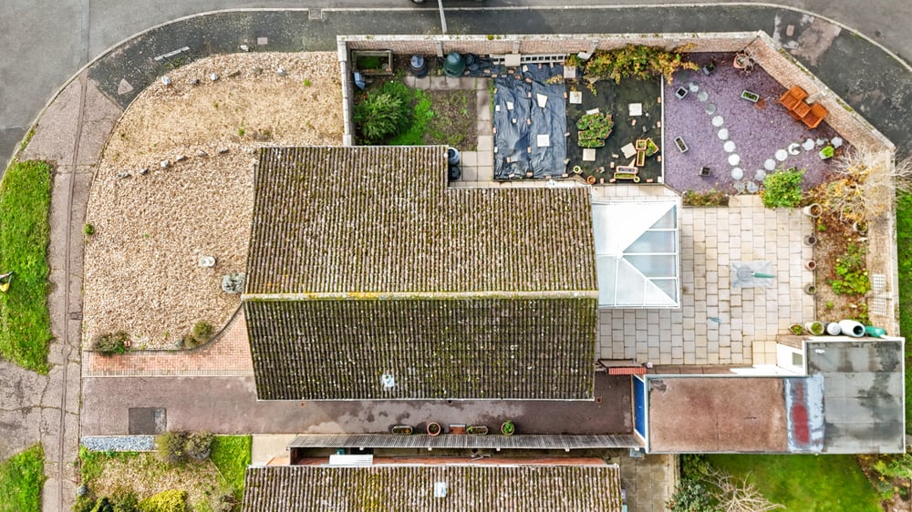 A fabulous wrap round garden all enclosed by brick walling and being low maintenance with patio areas, stone area, allotment area and with doors to garage and workshop.