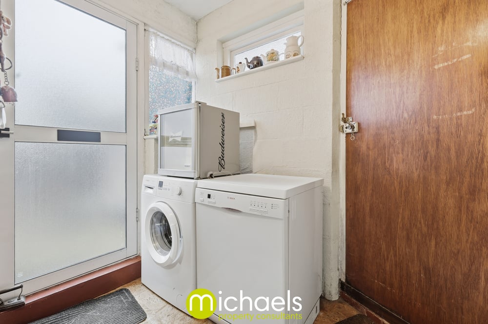 The kitchen offers ample storage, space for appliances, and leads to a useful utility area with direct access to the rear garden.