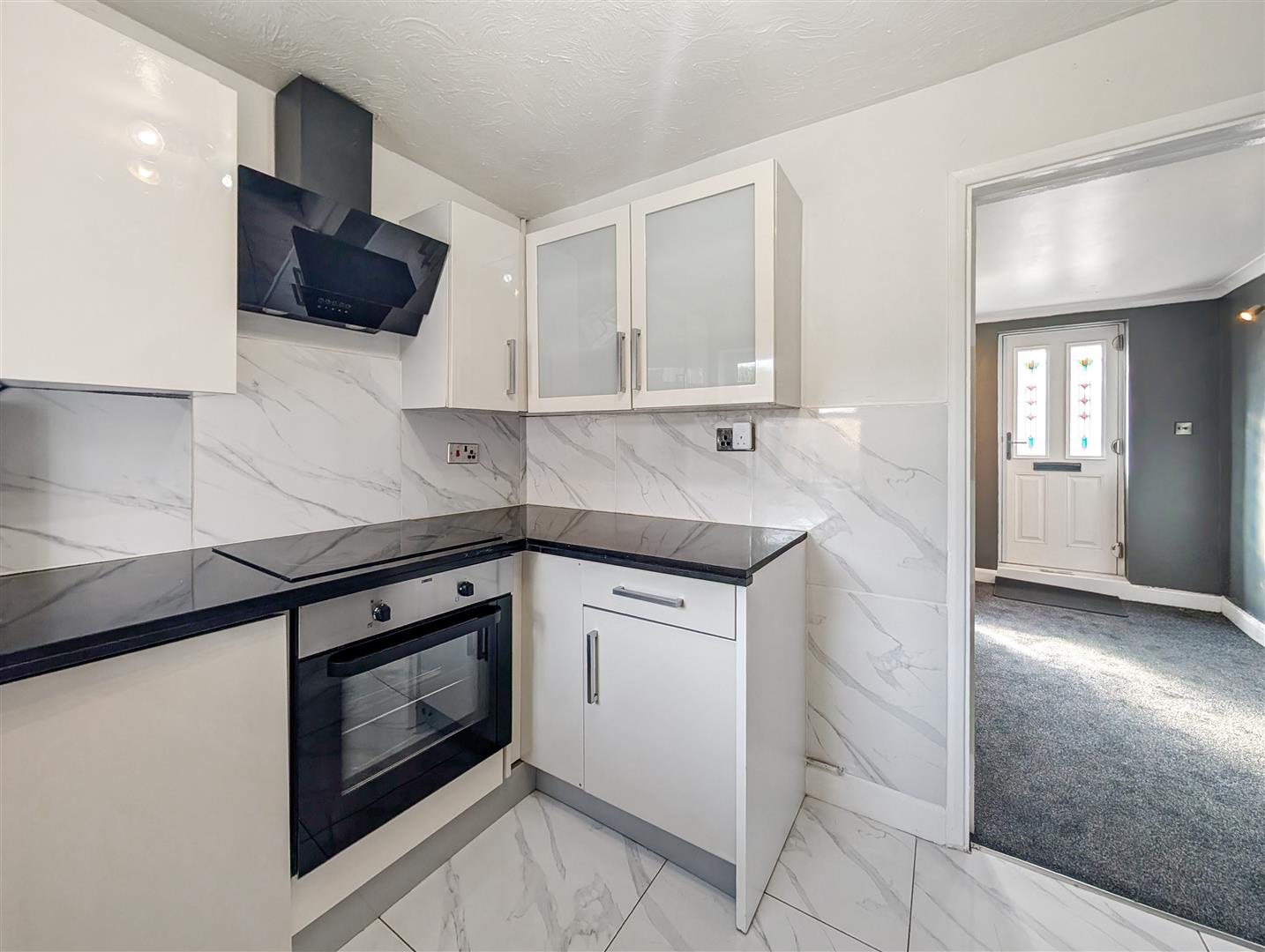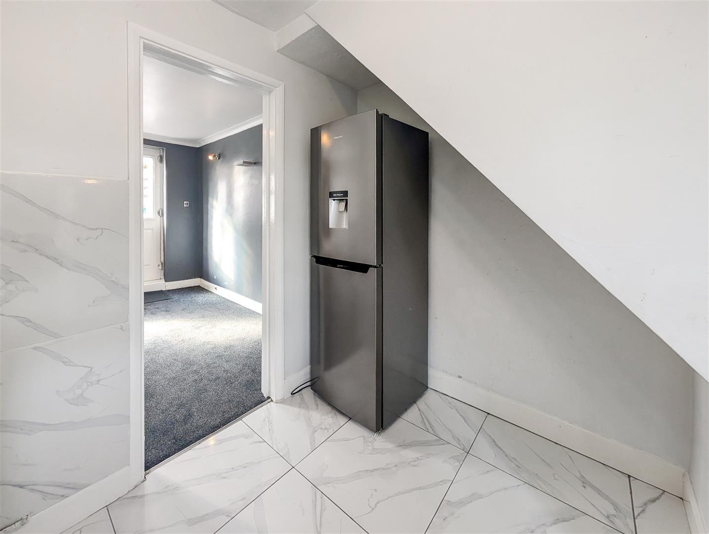 The property features a bright and spacious living room, perfect for relaxing or entertaining, alongside a contemporary kitchen fitted with modern units and inclusive of white goods appliances for added convenience.
