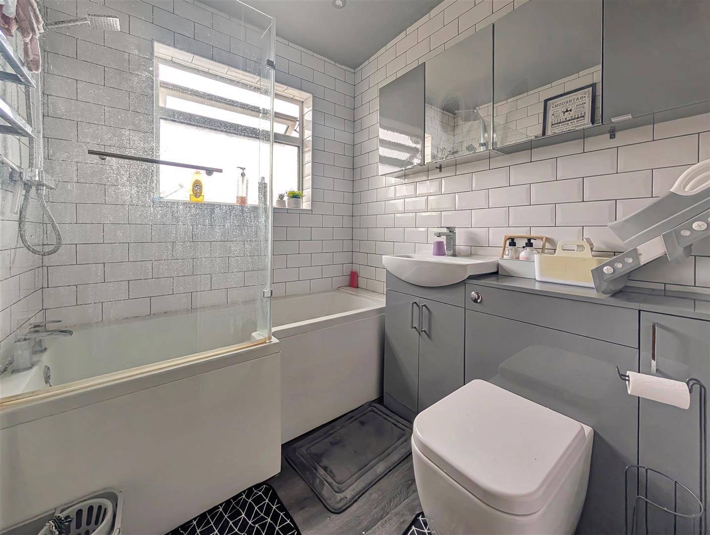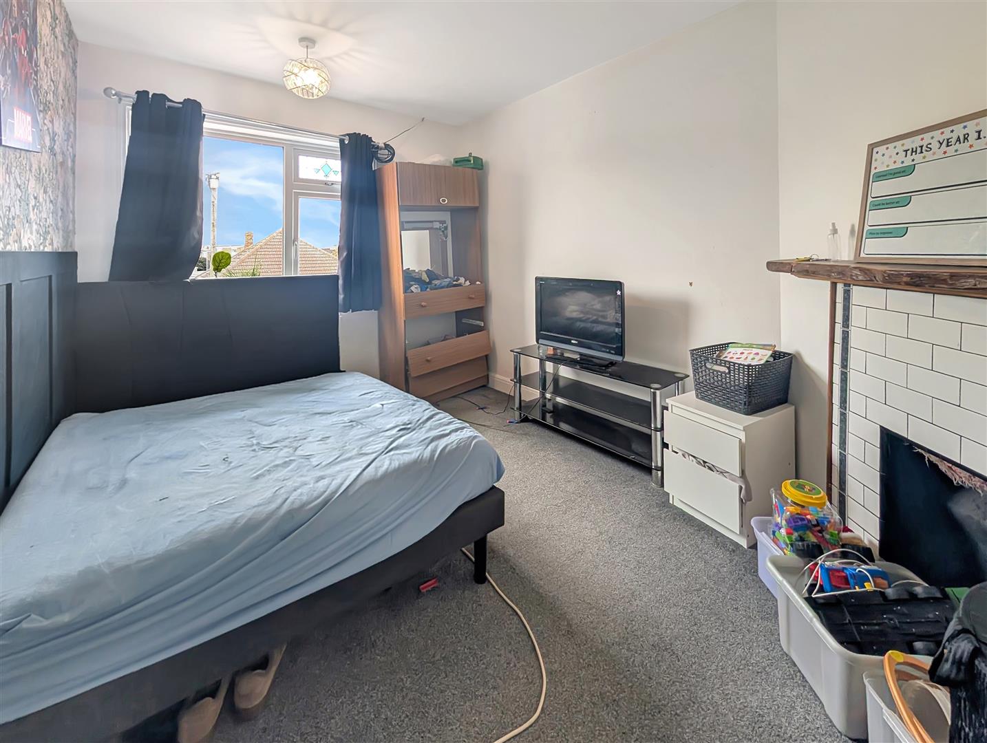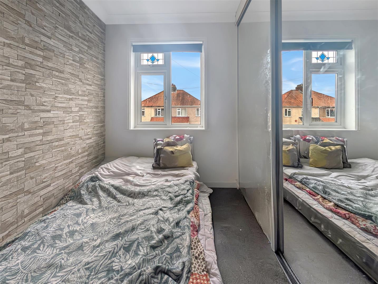 Upstairs, the accommodation comprises a generous master double bedroom with fitted wardrobes, a second double bedroom, and a well-proportioned single bedroom also benefiting from fitted storage. A modern family bathroom completes the first-floor layout.