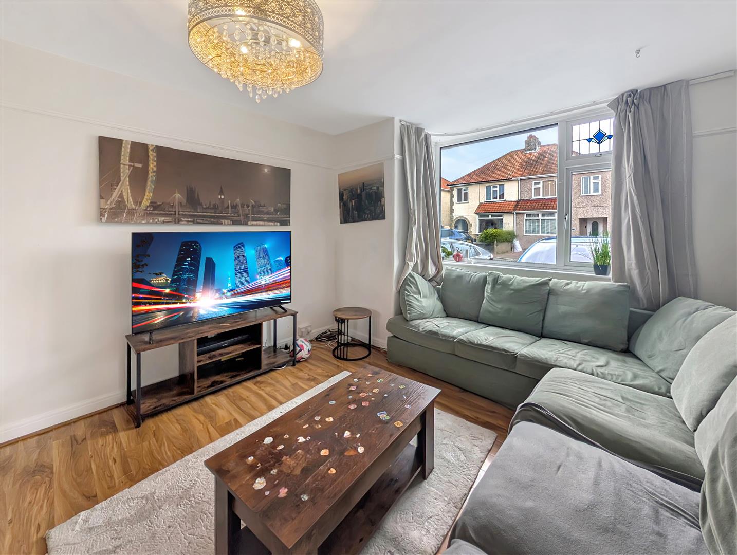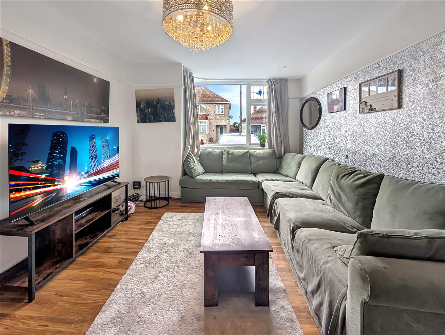 The property boasts a spacious and bright living area, perfect for relaxing or entertaining, alongside a separate kitchen and dining room that provide a practical and sociable layout.